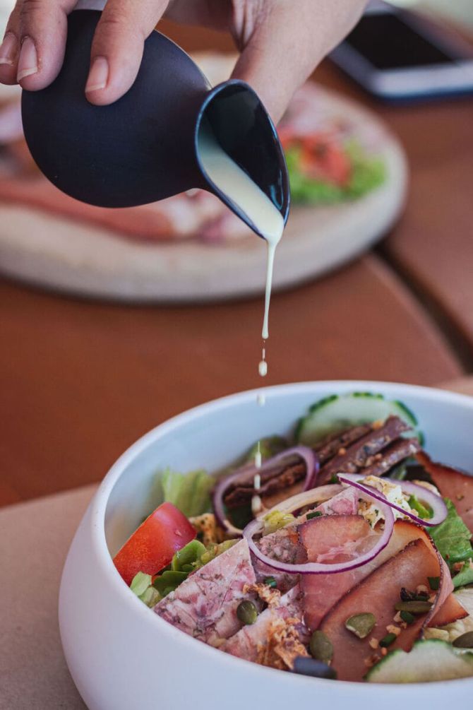 Salade Fermière15 €Salade verte, filet mignon de porc fumé, presskopf, jambon cru, fromage frais mariné